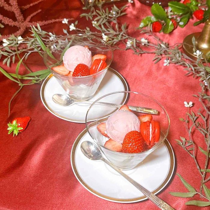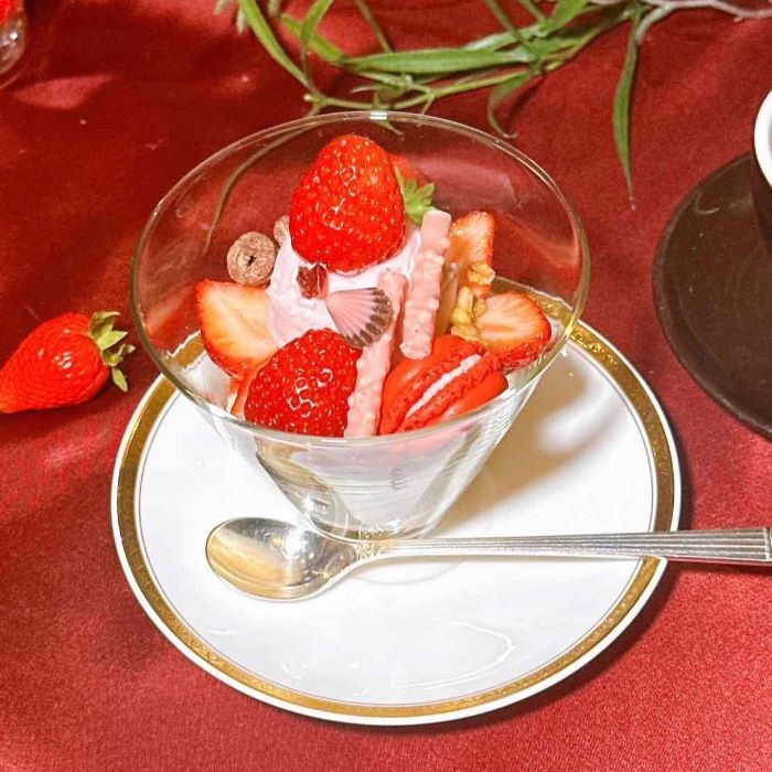 日常を離れた落ち着いた空間で過ごす時間は、自分へのちょっとしたご褒美にもぴったり。苺のやさしい香りに包まれる、春のひとときをお楽しみください。