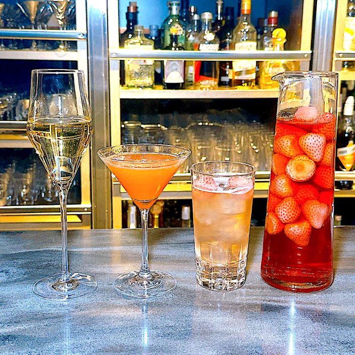 いちごリキュール、オレンジキュラソーさらにオレンジジュースを合わせた一杯。やや甘口ながらもさっぱりとした後味で、食事の時間を軽やかに彩ります。
