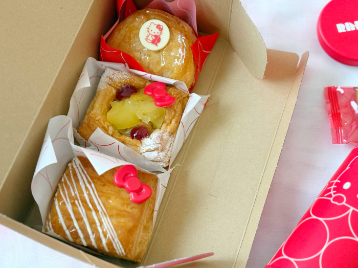 セットには、ハローキティとコラボした特別な「RINGO」自慢の焼きたてアップルパイやミルフィーユもイン!