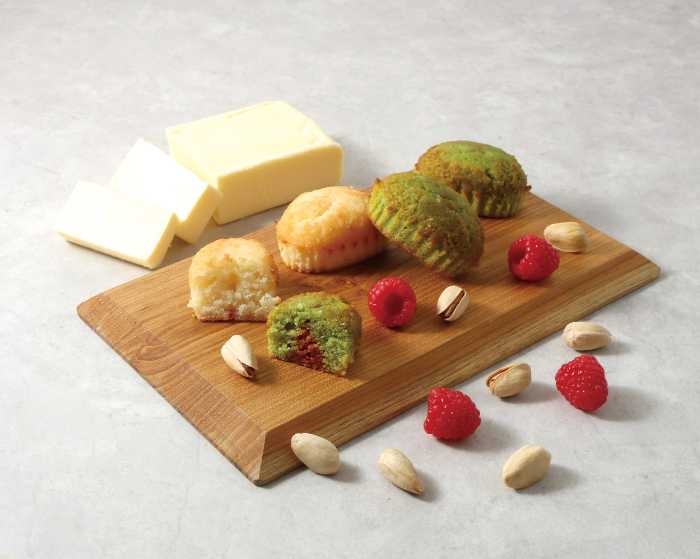 「ケークフォンダン」は、中からソースがとろけ出す贅沢なミニケーキ。ピスタチオ×フランボワーズやバターの濃厚な味わいが楽しめます。