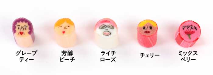 ギャルママやおかん、顔パック中の姿など、思わずクスッと笑ってしまうデザインが魅力。グレープティーなどリラックス感のある味わいも楽しめます。
