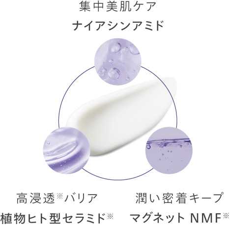 和栗由来のセラミドやナイアシンアミドなどを配合し、角質層までうるおいを届けながら、8時間*¹しっとり感をキープします。