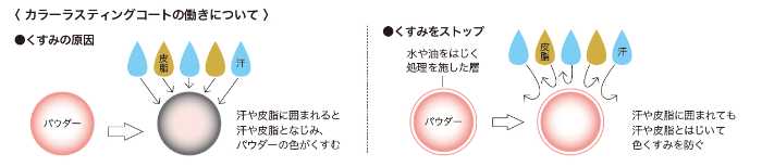 さらにカラーフィックスパウダー※4により、汗や皮脂による崩れも防ぎ、長時間きれいな状態が続きます。