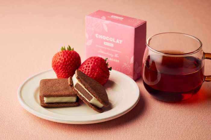 ショーコラ・ストロベリーティーは、神奈川県産のブランド苺「オーシャンベリー」を使用し、ダージリンと組み合わせた華やかな味わい。