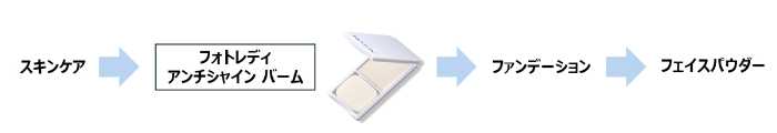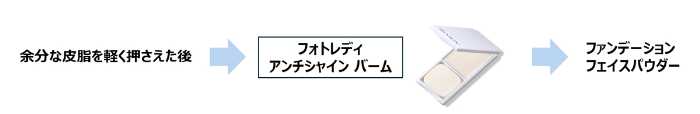 「フォトレディ アンチシャイン バーム」は、皮脂吸収成分配合でテカリを瞬時にオフ。特にTゾーンや小鼻などの皮脂が気になる部分も、さらっと整えます。