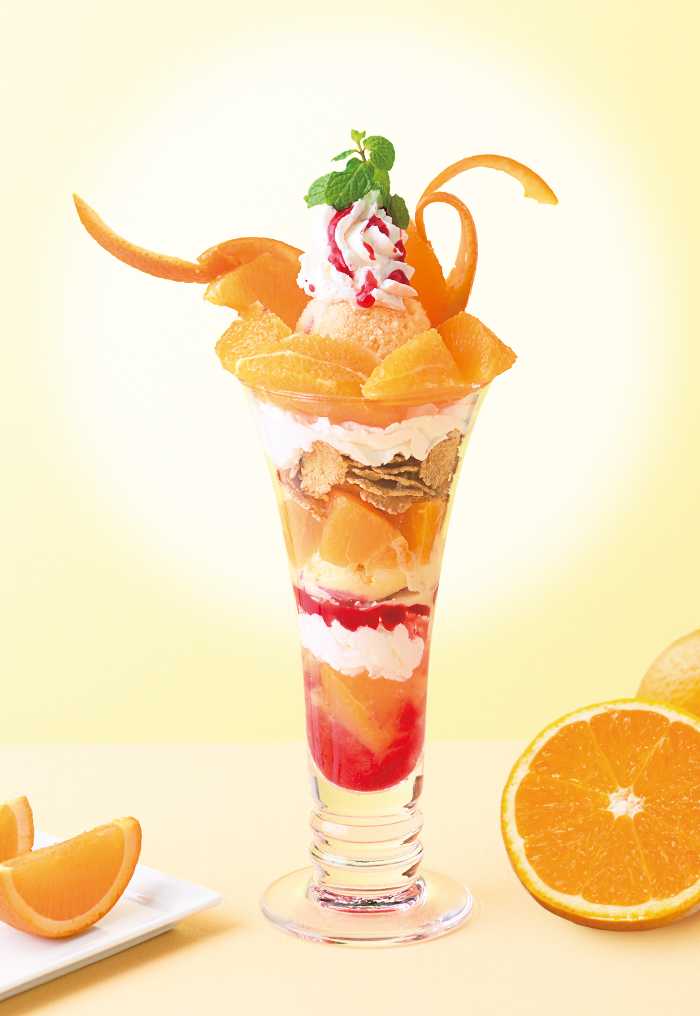 「愛媛県産清見オレンジのパフェ」は、1,600円(税込)、ドリンク付は1,980円(税込)。甘みと酸味のバランスが絶妙な清見オレンジを丸ごと1個分使用し、果汁たっぷりの味わいが魅力です。