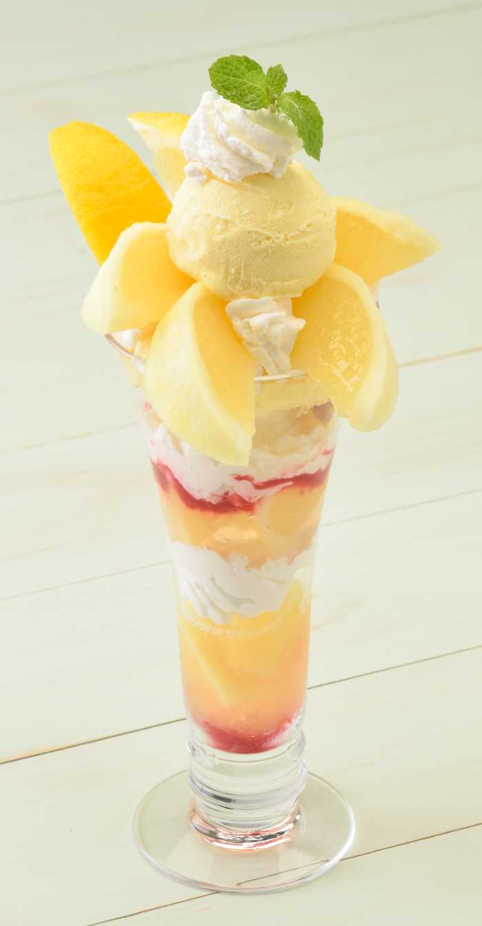 どちらのパフェも果肉を贅沢に使い、グラニテやアイスを重ねたボリューム満点の仕上がり。ひんやり食感とフルーツのジューシーさが重なり、満足感のある一品に。