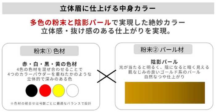 さらに、多色粉末&陰影パール配合により、軽いタッチで自然な立体感を演出。力を入れずにスルスル描けるので、濃くなりすぎる心配もありません。