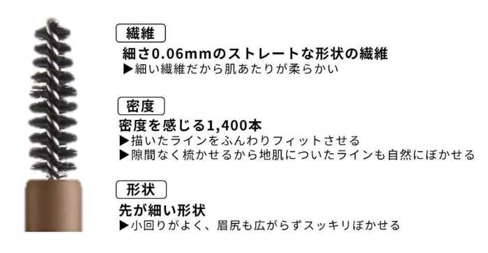 薄型楕円芯(1.3×2.5mm)で、広い面ではふんわり、細い面では眉尻をすっきりと描くことができます。