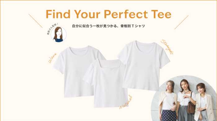 今回のカップインTシャツは、ウェーブ・ストレート・ナチュラルの3タイプ展開。それぞれの体型に合わせた設計で、自然にスタイルアップできるのがポイントです。