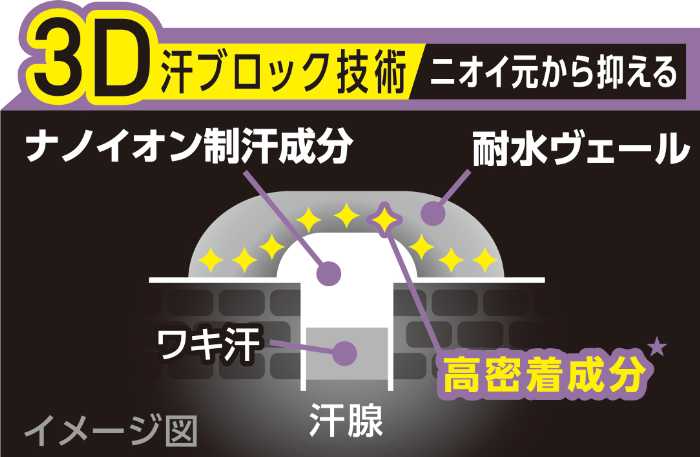 「汗ブロック プラチナロールオン」は40ml(オープン価格)。3D汗ブロック技術により、汗の出口にアプローチし、ニオイや汗ジミの原因をしっかり抑えます。