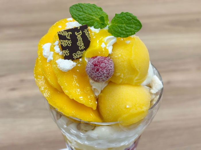 たっぷりのマンゴーにアイスやクリームが重なって、見た目も味も満足度高め。
