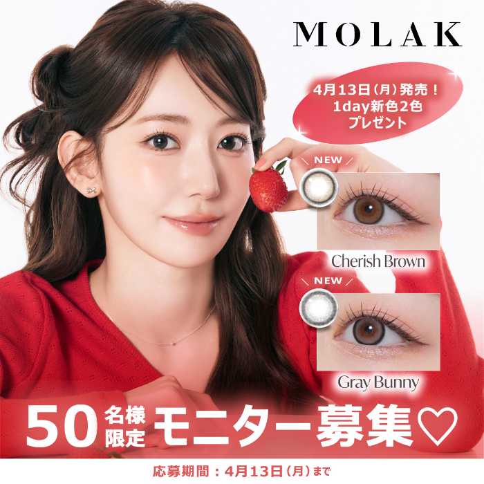 瞳の印象をもっと可愛くアップデートしたい方に♡宮脇咲良プロデュースの人気カラコンブランドMOLAKから、新色が登場しました。ナチュラルなのにしっかり盛れる絶妙カラーで、毎日のメイクをより魅力的に。透明感も可愛さも欲張りたい方にぴったりの新作です♪