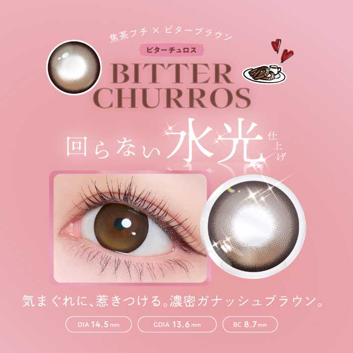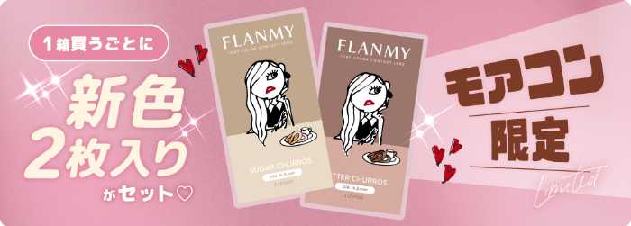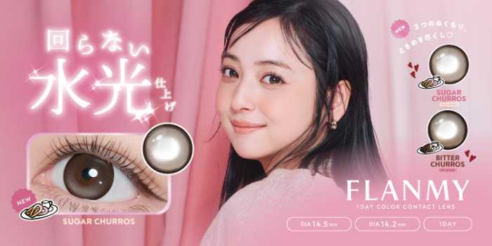 大人気カラコンブランドFLANMYから、待望の新色が登場♡今回のテーマは“回らない水光”。瞬きしてもハイライトの位置が固定されることで、自然なツヤと奥行き感をキープできるのが魅力です。甘さとほろ苦さを感じる「シュガーチュロス」「ビターチュロス」の2色は、どちらも今っぽくときめく瞳を演出。日常使いも特別な日も、視線を惹きつける新しい魅力に出会えます♪