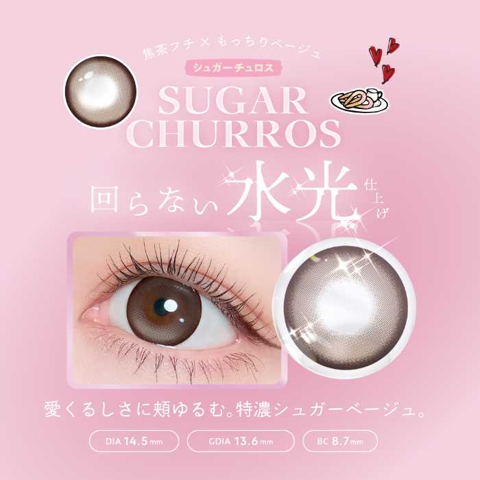 「シュガーチュロス」は、白っぽベージュが特徴の特濃シュガーベージュカラー。ふんわり甘く、きゅるっとした可愛らしい瞳に仕上がり、写真映えも抜群です。