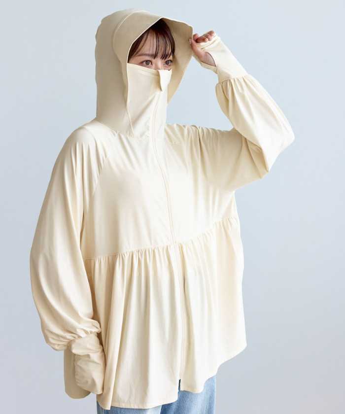 「“絶対焼けたくない”UVパーカー」は、顔まわりから指先までしっかりカバーできる設計が魅力。つば付きフードに加え、ファスナーを上げれば鼻先まで覆うことができ、紫外線から肌をしっかり守ります。
