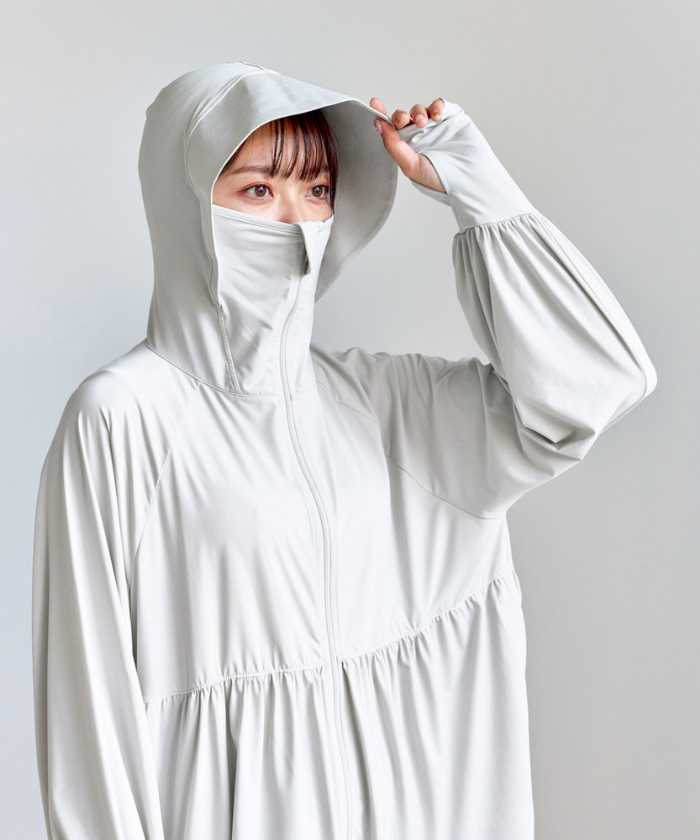 着丈は約70cmで、腰まわりからヒップまでしっかりカバーできる安心感のあるデザイン。日常のコーディネートにも取り入れやすく、“UV対策=スポーティ”なイメージを覆す一着です。