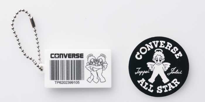 本コラボシューズ購入者には、オリジナルステッカーを1点につき1枚プレゼント。さらにWhiteatelierBYCONVERSE原宿店で購入すると、先着でオリジナルキーホルダーも付いてきます。