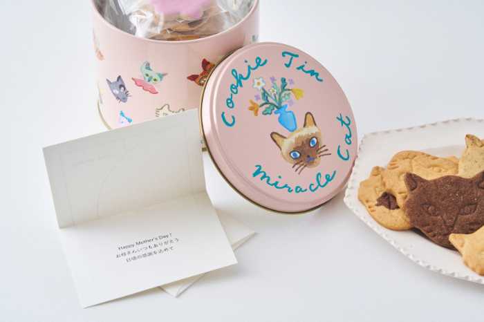 「Berry Miracle Cat Cookie Tin」は税込2,950円。ネコモチーフのクッキーが詰まった可愛らしい缶で、売上の一部は動物保護活動へ寄付されます。見た目もストーリー性も魅力のギフトです。