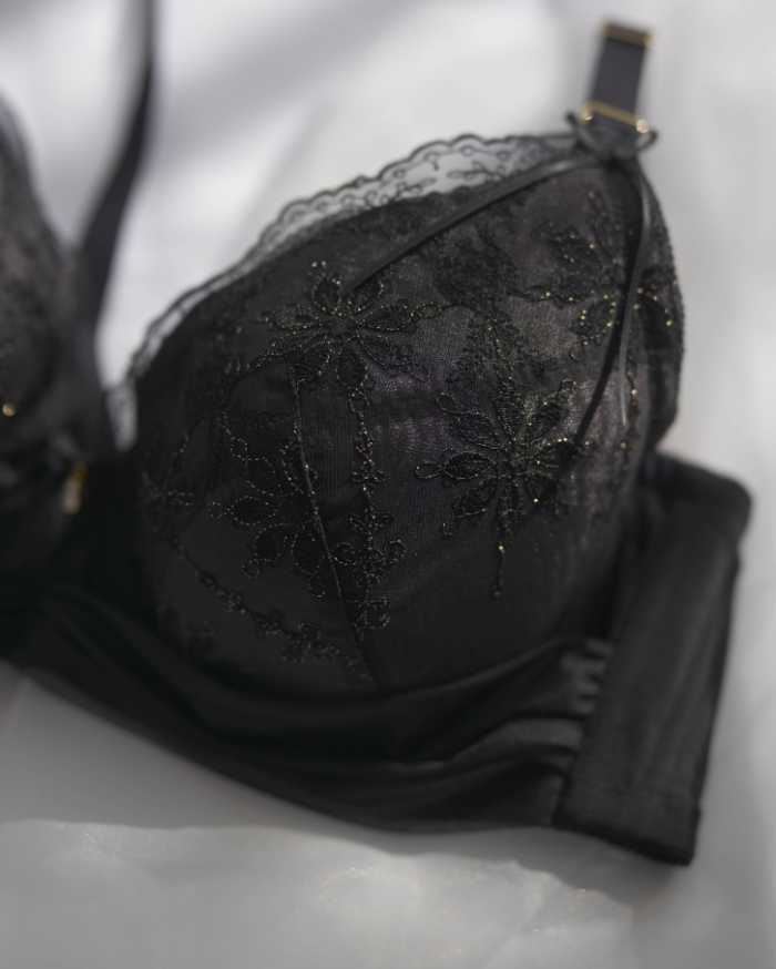 繊細な花柄刺繍にラメ糸をあしらった華やかな新デザイン。