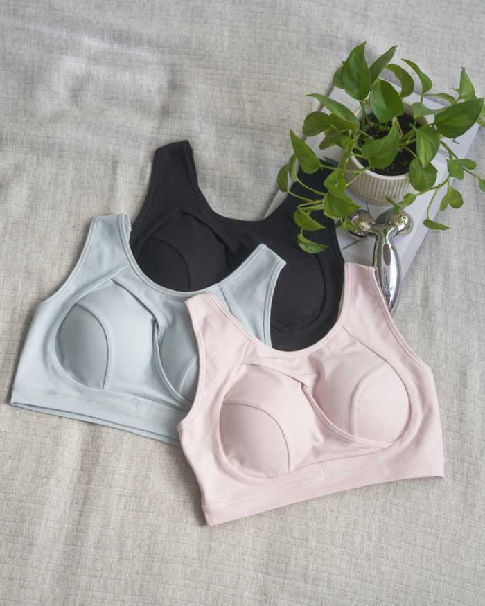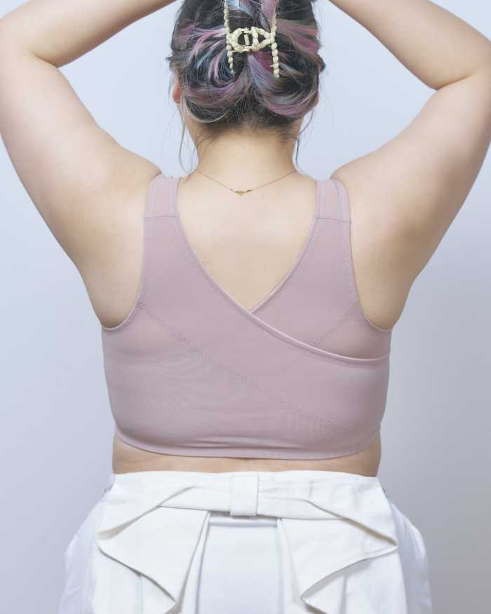 背中のクロスパネルで自然と姿勢を整えるサポートブラ。
