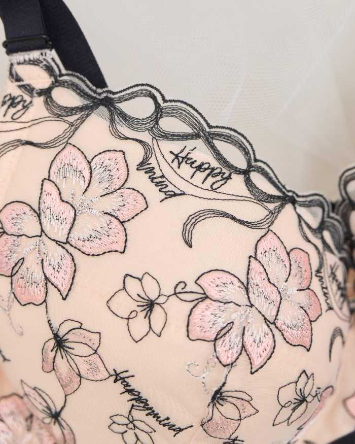 “HappyMind”の刺繍が印象的なシリーズ。リボンや花刺繍を贅沢にあしらい、フェミニンさと大人っぽさを兼ね備えたデザインに仕上がっています。