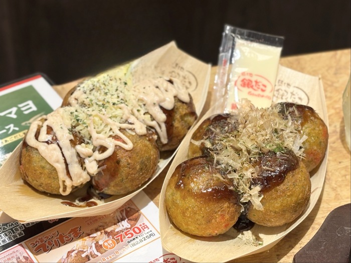 1階の店頭でも、テイクアウトのたこ焼が購入できます。元町〜三宮での食べ歩きや、お土産などにも便利です。