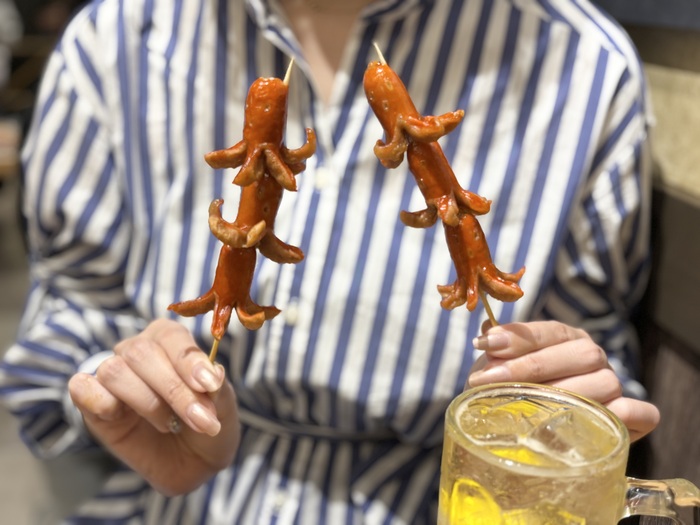 2本からオーダー可能!「とり皮棒」はカリッと軽い食感で、甘辛な自家製だれ、後から追いかけてくるピリっと感がハイボールとの相性も抜群!