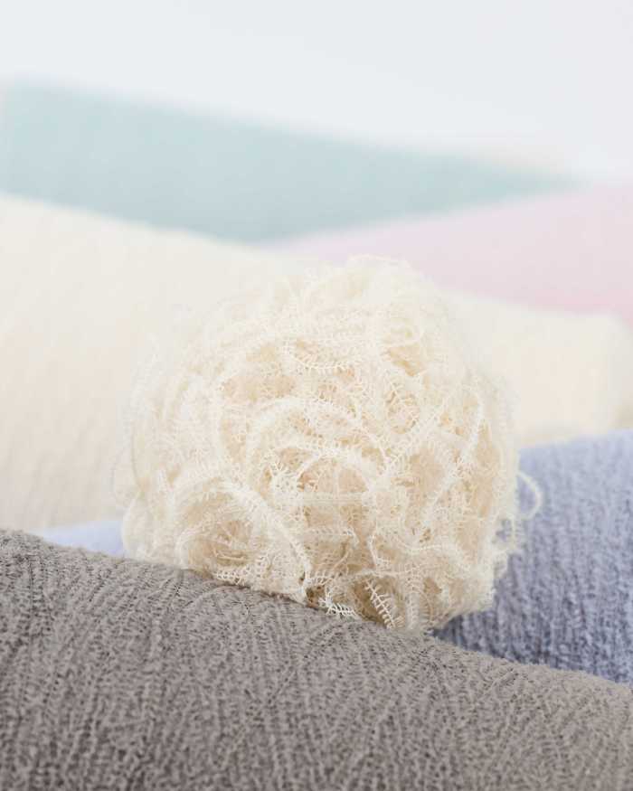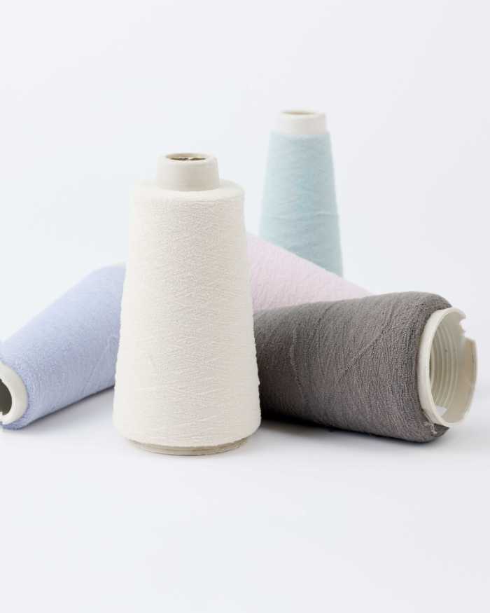 ナイネンの魅力は、独自のニット構造にあります。セラミックスを練り込んだシェニールヤーン糸を使用し、空気を含んだふんわりとした質感を実現。