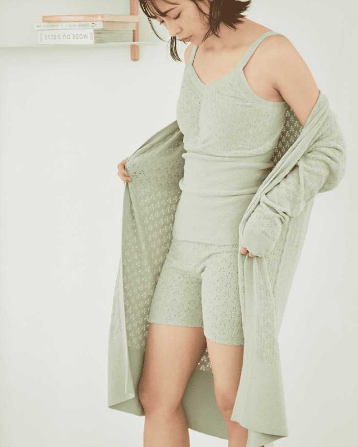 さらに吸湿発熱機能により、自然に体温をサポートしてくれます。透かし編みの優しいデザインも魅力で、機能性と美しさを兼ね備えたランジェリーです♡
