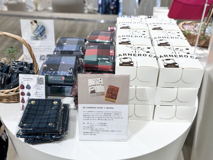 毎週土曜日のみの限定販売!食品添加物不使用こだわりの素材で作る「DE CARNERO CASTE」とコラボレーションしたカステラ。お土産やギフトにも嬉しいとっておきのお菓子です。お隣には、大容量の保冷バッグも販売されています。