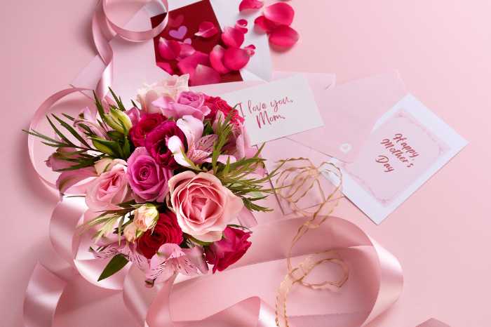 フラワーブーケ付きのデザインは見た目にも華やかで、母の日だけでなく特別な日の贈り物にもおすすめです。
