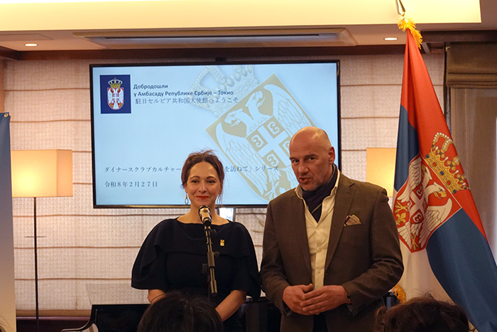 当日は大使館アシスタントの長門ティヤナさん進行のもと進められました。冒頭では、右の参事官のミラン・グルイッチさんもセルビアの魅力を語ってくださいました。