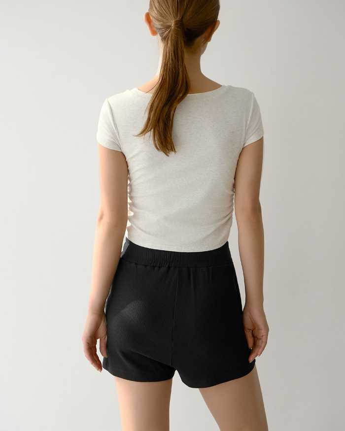 内蔵されたガードルにより、ヒップや骨盤をやさしくサポート。適度なホールド力で締め付けすぎず、自然なスタイルアップを叶えます。伸縮性のあるリブ素材で、動きやすさも抜群です。