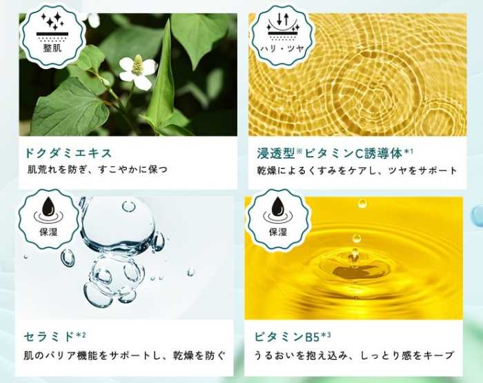 ダブルCICA成分12を配合し、乾燥や外的刺激による肌荒れをやさしく整えます。角質層までうるおいを届け、キメの整ったすこやかな肌へ導きます。