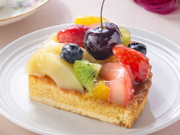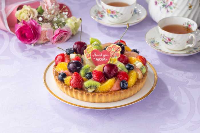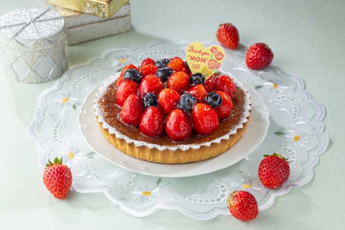 「母の日フリュイタルト」は約20cm、3,229円(税込)。苺や白桃、オレンジなど色とりどりのフルーツをたっぷり使用し、見た目も華やか。