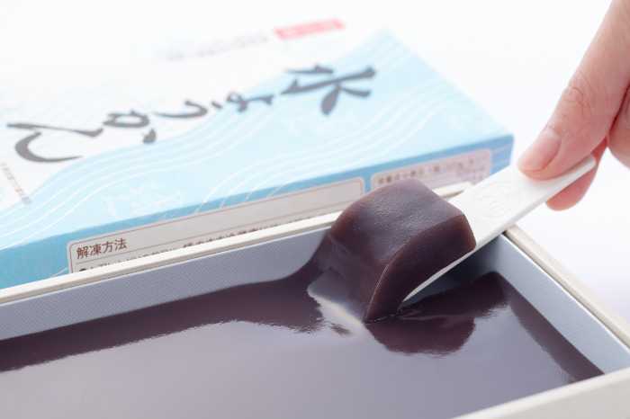 見た目も上品な水ようかんは、ご自宅用はもちろん、季節のご挨拶や手土産にも人気。冷凍状態で約2カ月保存可能で、解凍後は早めに楽しめます。