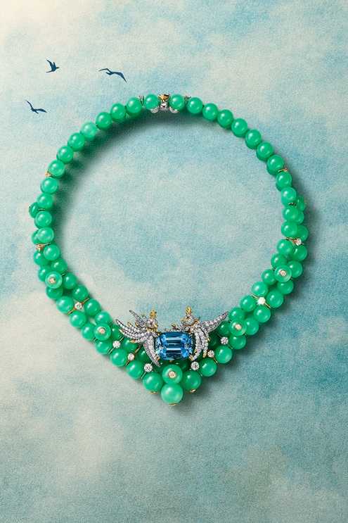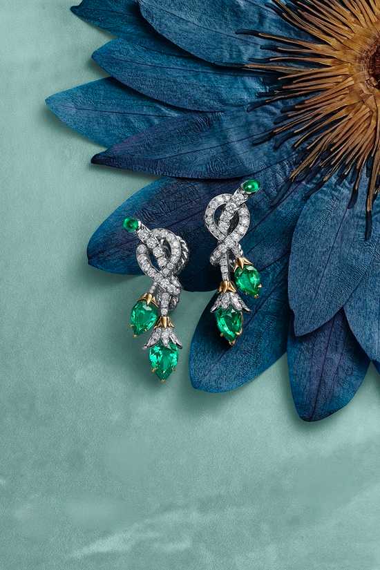 それぞれの石が持つ色彩と輝きを最大限に引き出し、作品に生命感を与えています。細部までこだわったクラフトマンシップが、ラグジュアリーな魅力を際立たせます。