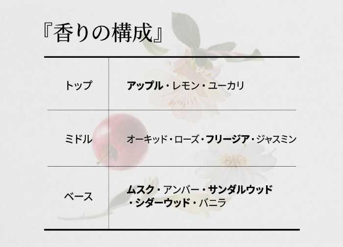 フルーティーシトラスとフリージア、ウッディな香りが重なる“アヌカチンアップルの香り”が特徴。36時間持続*する香りと軽やかなテクスチャーで、毎日のケアが特別な時間に。