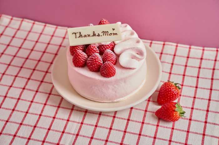 「母の日限定いちごのピンクショートケーキ(4号)」は4,860円(税込)。淡いピンクのクリームとたっぷりのいちごで彩られた華やかなケーキです。