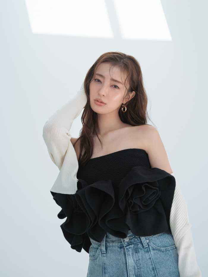 FRAYI.Dの夏コレクションは、軽やかさと上質さを兼ね備えた大人のためのラインアップ。宮本茉由さんが纏う洗練されたスタイルは、日常をさりげなく格上げしてくれます。