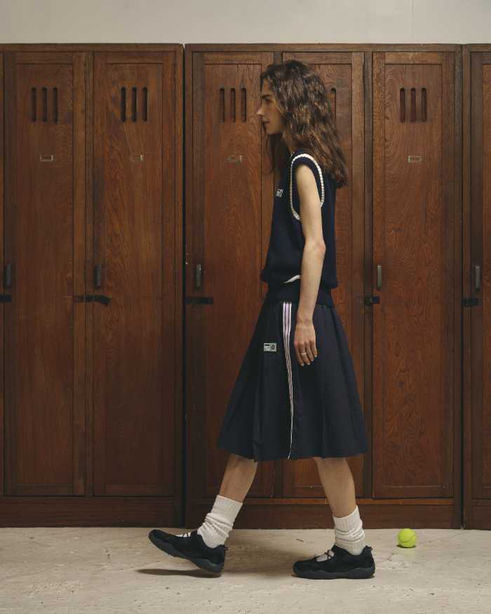 テニスコートを思わせるクリーンな印象と、ストリートの抜け感を掛け合わせたスタイルは、きちんと感とリラックス感を両立。
