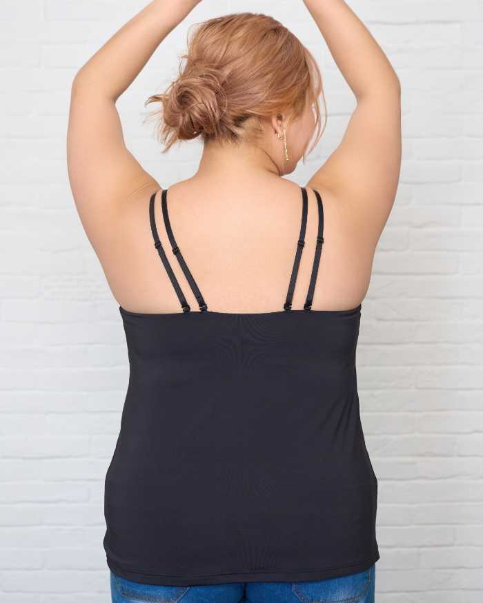 また「ワイヤーで支えるキャミ_90625」は、接触冷感素材を採用した新作。カラーはアイボリー・ブラック、サイズは3L~8L、価格は3L~5L6,050円、6L~8L6,600円(税込)。