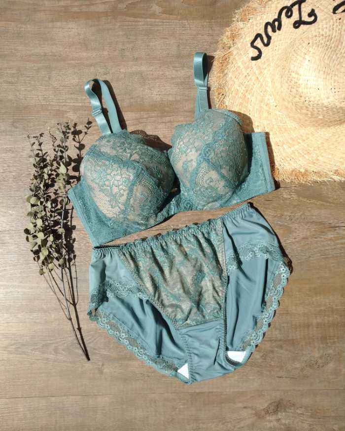 「美胸キーパー3/4カップブラ_90379」は、グリーン・ブラックの増産モデル。サイズはB80~H105、価格は5,500円(税込)。ペアショーツは1,980円(税込)でLL~10Lまで展開。