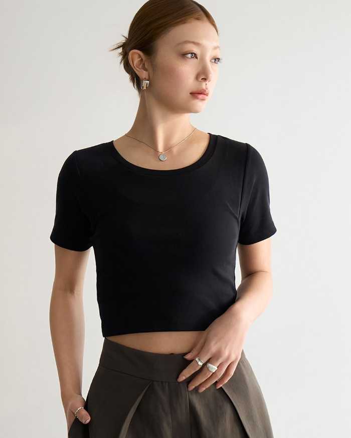 カップインクロップドクルーネックT