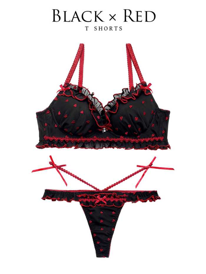 ショーツはフルバックとTバックの2タイプを展開し、ヒップ部分にもたっぷりのフリルをあしらった愛らしい仕上がりです。