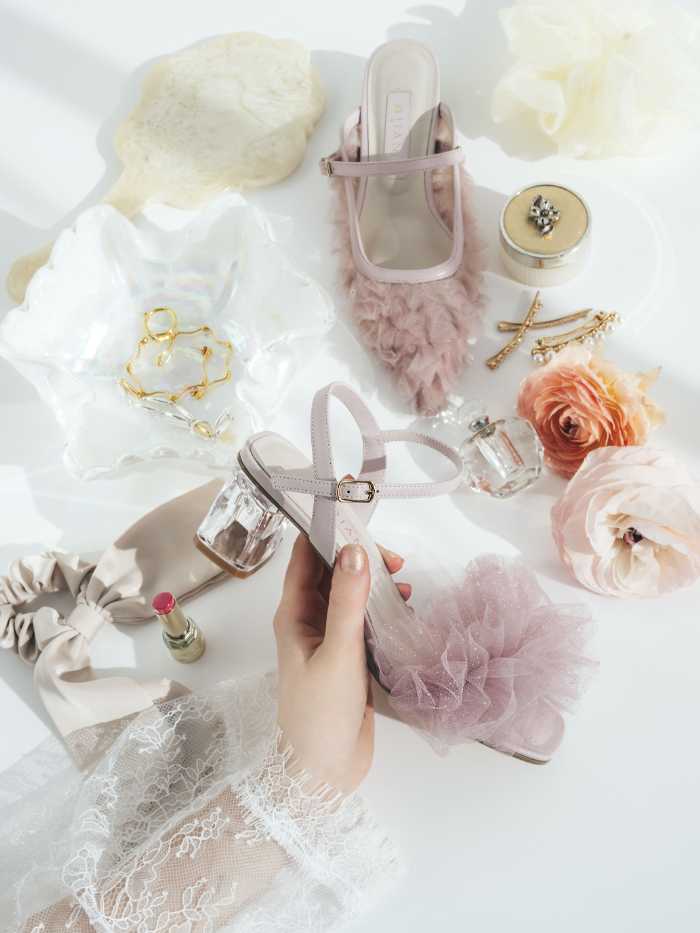 チュールやリボンなどのディテールが、足元に軽やかな印象をプラスし、コーディネートを華やかに仕上げます。