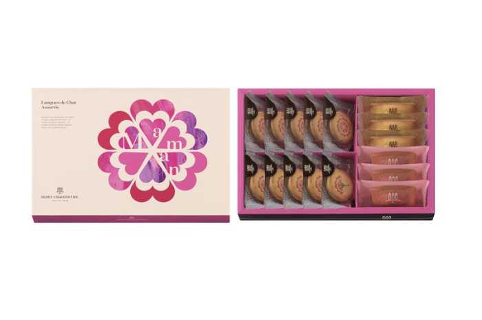 オンライン限定の「ラング・ド・シャ・アソート〈イニシャルミニタオル付き母の日ボックス〉」3,904円(税込)は、焼き菓子に加えAfternoonTeaLIVINGのミニタオル付き。
