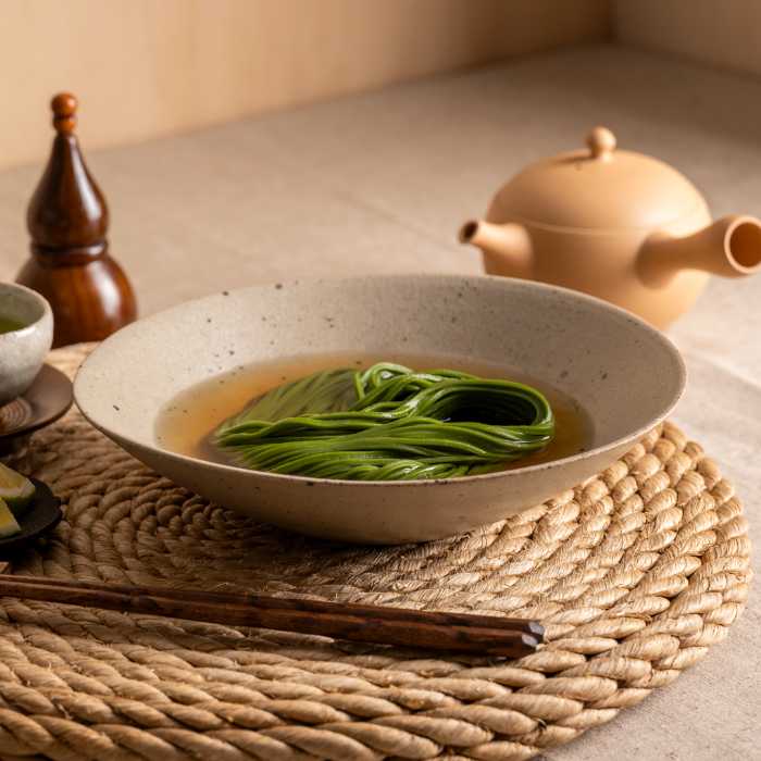 食卓を彩る「抹茶うどんセット(母の日ラッピング付)」(2,592円・税込※送料込)は、180g×2(約4人前)。めんつゆ(20ml×2個付)付きで手軽に楽しめるのも嬉しいポイント。