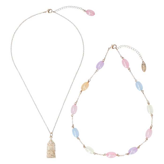 プレートネックレス(W13×H30×D2mm/チェーン全長450mm)とビーズネックレス(全長420mm)の2点セットで、重ね付けも楽しめます。